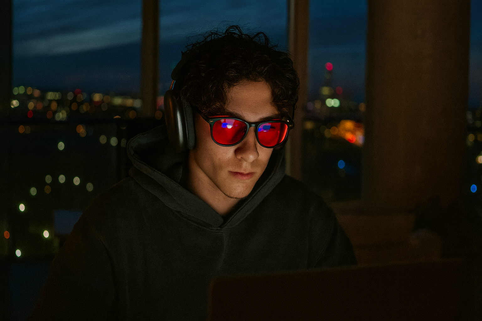 🔴 NightShield™ (Red Lens): Blocks nearly all blue light at night, promoting natural melatonin production so you can relax and sleep better.